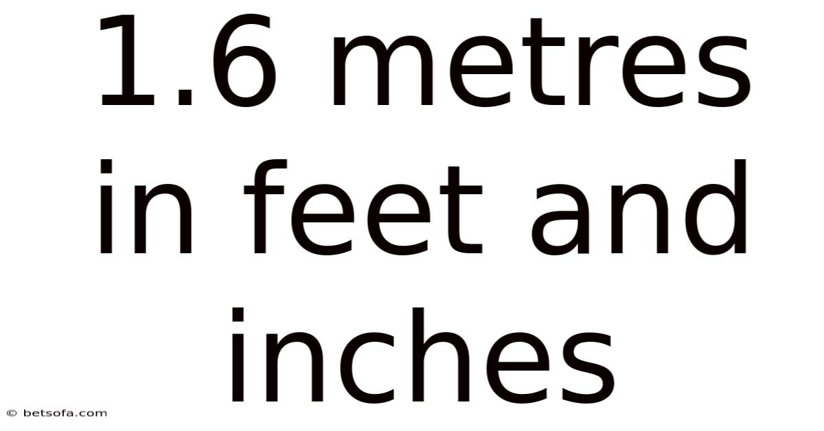 When you need to convert 1.6 metres to feet and inches, you are stepping into the everyday world of measurement translation. In real terms, by the end, you will be able to state confidently that 1. Because of that, in this article we will explore the exact conversion for 1. 6 m, walk through the math behind it, examine real‑life scenarios where the conversion matters, and clear up the most common misunderstandings that trip up beginners. Whether you are buying furniture, planning a DIY project, or simply trying to understand a height listed in a foreign brochure, knowing how to move fluidly between the metric system (metres) and the imperial system (feet and inches) saves time and prevents costly mistakes. 6 metres equals 5 feet 3 inches (rounded to the nearest inch) and you will understand why that figure is useful in everyday contexts Surprisingly effective..