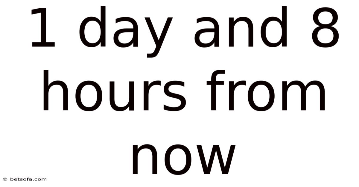 Background and Context: Why Precision Matters The need to calculate such specific future points arises in numerous scenarios. In project management, a deadline set as "1 day and 8 hours from now" provides a clear, unambiguous target for completion, ensuring everyone understands the exact timeframe. In event planning, coordinating a meeting or activity for "1 day and 8 hours from now" guarantees alignment across different schedules and time zones. Personal commitments, like scheduling a doctor's appointment or picking up a package, often rely on this level of specificity. Furthermore, understanding this concept forms the bedrock for more complex time calculations, such as scheduling recurring events or calculating time differences across vast distances. It transforms abstract time into a manageable, actionable resource.