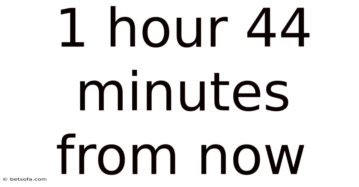 At its core, "1 hour 44 minutes from now" is a temporal reference point. It represents a precise moment in the future, calculated by adding 1 hour and 44 minutes to the current time. To give you an idea, if it’s 3:00 PM today, this phrase would point to 4:44 PM. While seemingly straightforward, this concept intersects with broader themes like time management, psychological time perception, and even cultural attitudes toward punctuality Simple, but easy to overlook..