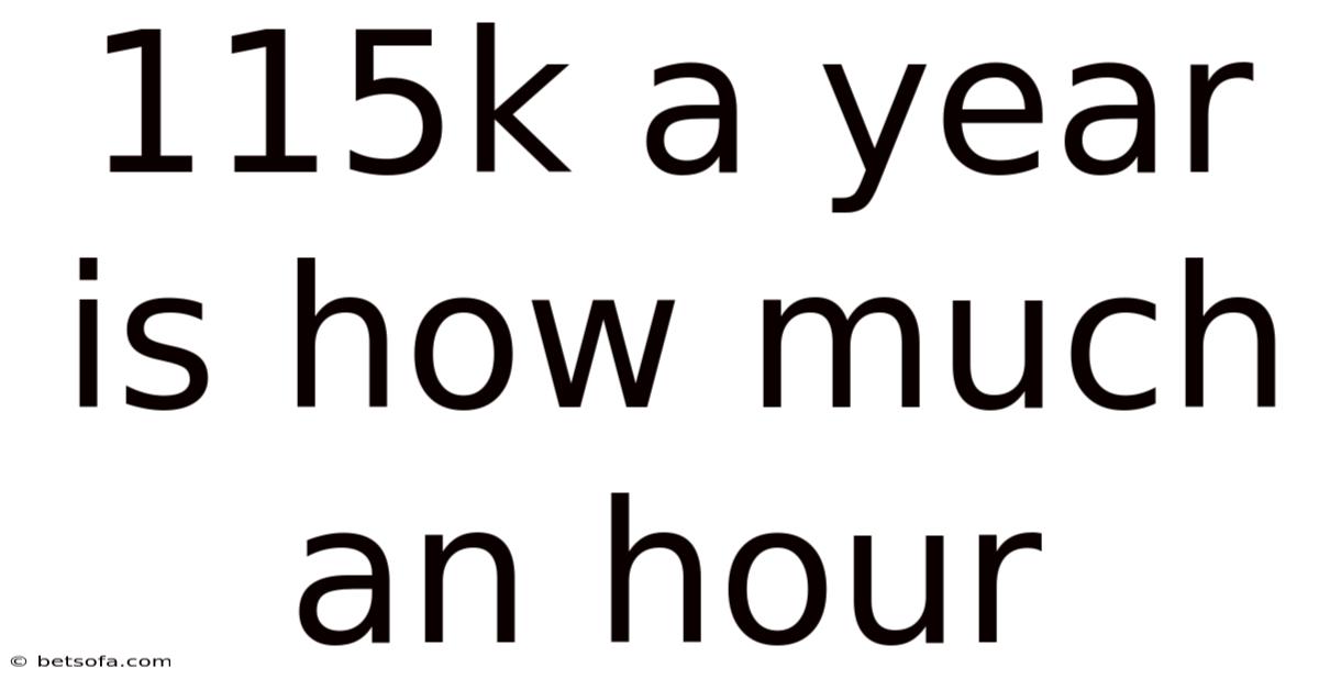So, $115,000 a year corresponds to roughly $55.29 per hour before taxes and deductions, assuming a standard 40‑hour workweek with no unpaid time off.