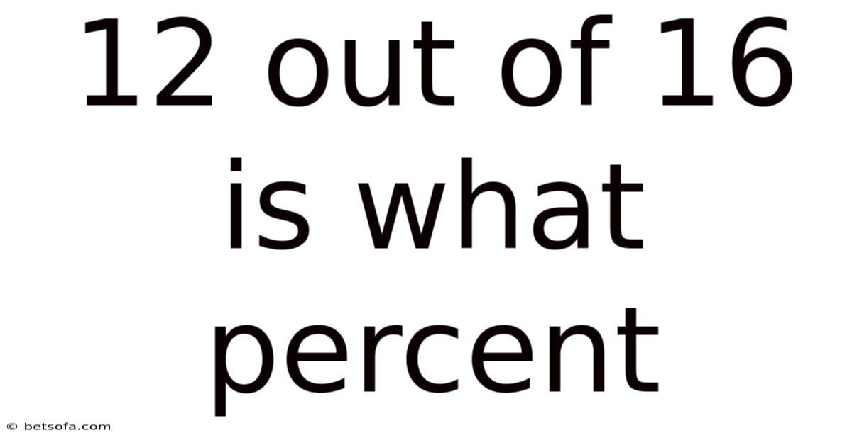 At its core, the phrase 12 out of 16 is what percent describes a comparison. ” This shift from a specific fraction to a standardized scale of 100 allows for easier comparison across different sets of data. Even so, you have a total amount, which is 16, and a portion of that total, which is 12. Also, to express this portion as a percent, you are determining how many parts out of 100 the fraction represents, because percent literally means “per hundred. Here's one way to look at it: comparing 12 out of 16 to 9 out of 12 becomes much simpler when both are converted into percentages, even if the original totals are different.