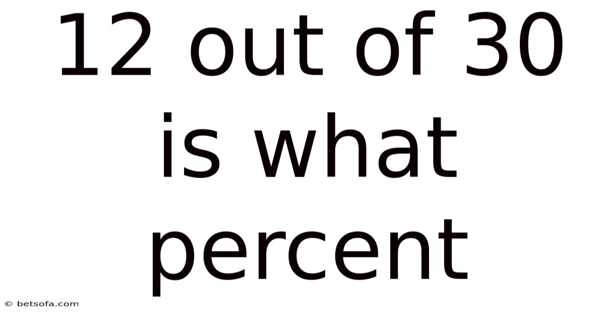 When you hearthe phrase “12 out of 30 is what percent,” you’re looking at a basic yet powerful mathematical question that appears in everyday life, academics, business reports, and even casual conversations. In this article we’ll demystify the calculation, walk you through the underlying logic, and show you why mastering this simple conversion can sharpen your analytical skills and improve decision‑making. By the end, you’ll not only know the exact percentage for 12 out of 30, but you’ll also be equipped to tackle any similar “part‑of‑whole” percentage problem with confidence.