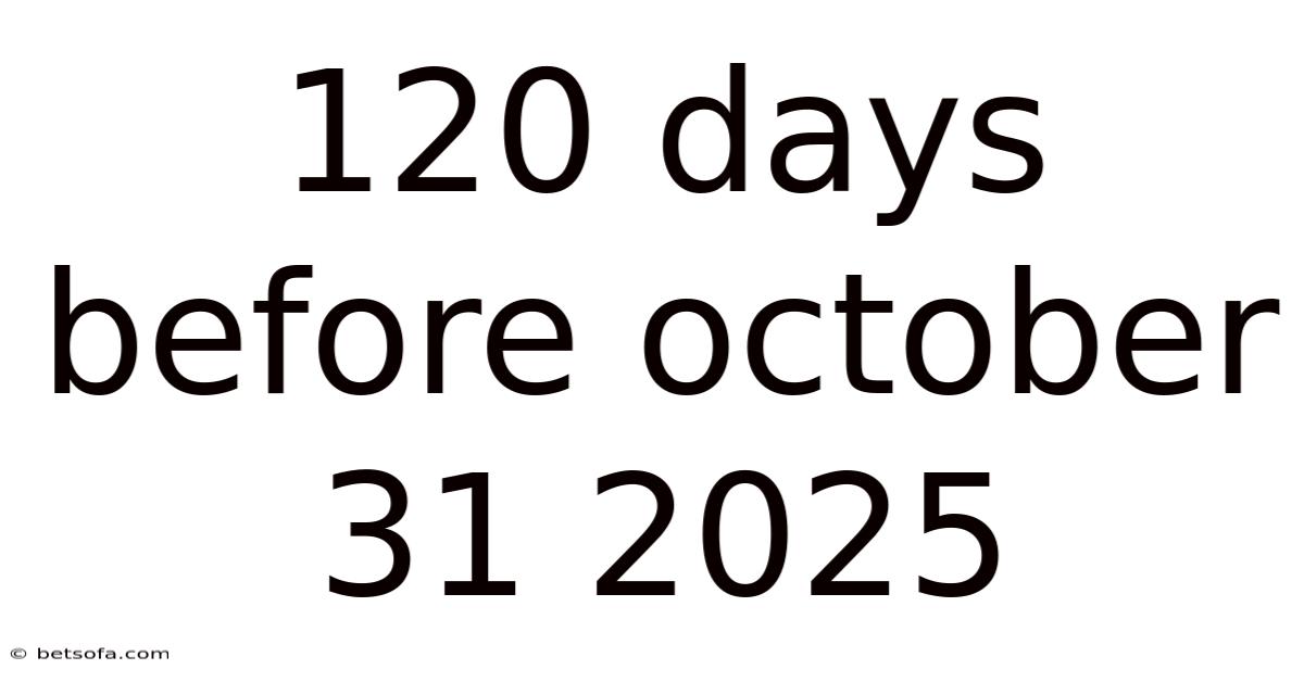 When planning for a major deadline, knowing exactly when to begin is half the battle. Which means if your target date is October 31, 2025, counting backward precisely 120 days lands you on July 3, 2025. This specific four-month window is not just a mathematical curiosity; it is a highly strategic timeframe used by professionals, students, and project managers to transform ambitious goals into achievable outcomes. By identifying this exact starting point, you eliminate guesswork and establish a clear runway for preparation, execution, and refinement.