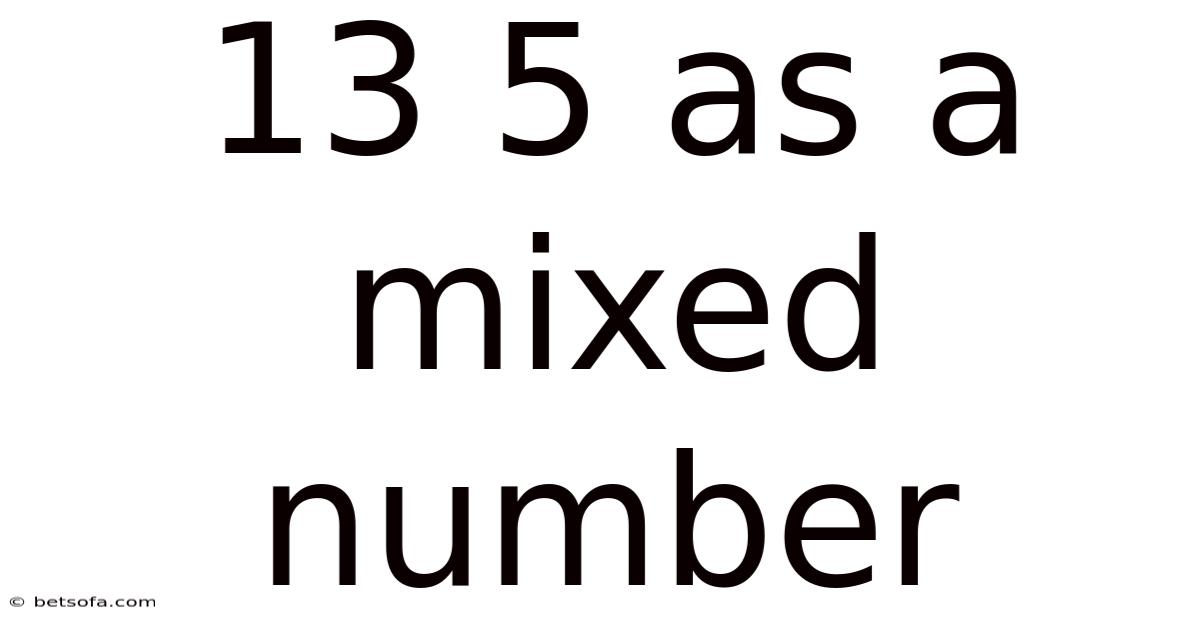 The expression "13 5" can be ambiguous, but within the context of mathematics, it most commonly signifies the improper fraction 13/5. Converting this fraction into its equivalent mixed number is a fundamental skill in arithmetic, essential for simplifying calculations, interpreting results in real-world contexts, and building a strong foundation for more advanced mathematical concepts like algebra and calculus. This article will provide a comprehensive exploration of what 13/5 represents, the process of converting it to a mixed number, and its practical significance No workaround needed..