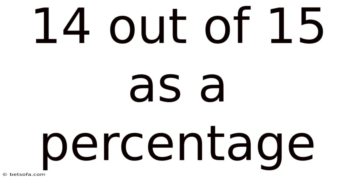 Every time you hear the phrase “14 out of 15 as a percentage,” you might instantly picture a simple fraction being converted into a more familiar format. Now, in this article we will explore what 14 out of 15 represents as a percentage, why the calculation matters, and how to perform it confidently. This conversion is more than a mechanical arithmetic exercise; it helps us interpret scores, success rates, and probabilities in everyday life. By the end, you’ll not only know the exact percentage but also understand the underlying concepts that make percentage conversions a valuable skill in education, business, and personal decision‑making Not complicated — just consistent. Practical, not theoretical..