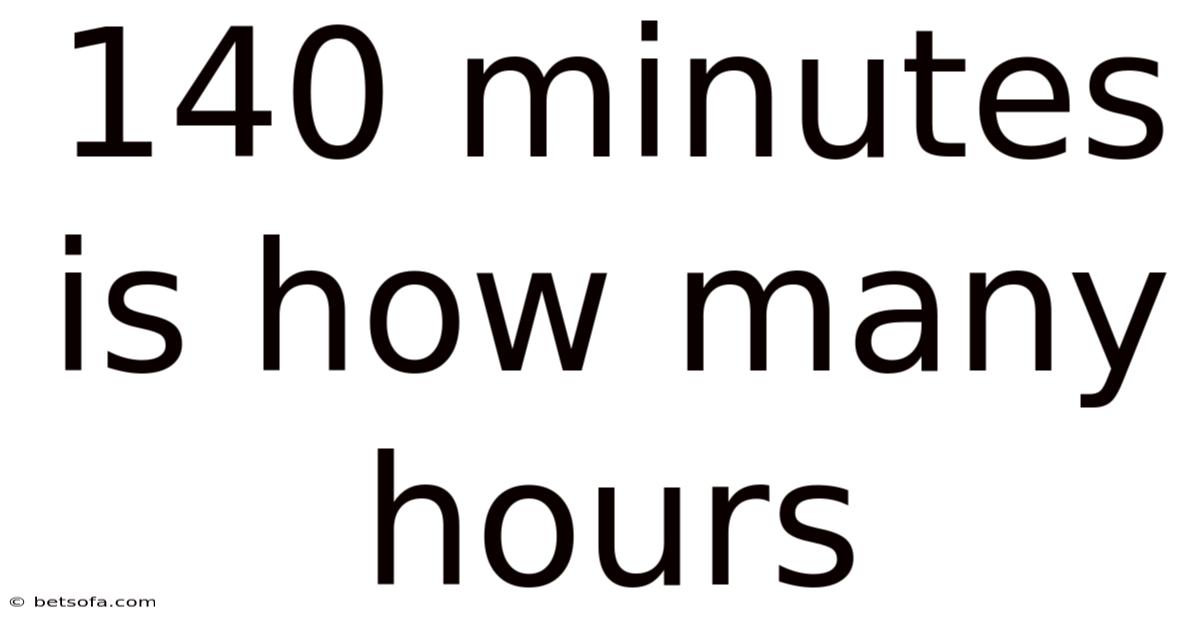 In our fast-paced world, where every minute counts, a simple question like "140 minutes is how many hours?But whether you're scheduling a marathon meeting, planning a long-distance drive, tracking a workout regimen, or calculating billable client time, understanding how to convert between minutes and hours is a fundamental life skill. This article will transform you from someone who might guess at the answer to a confident time-conversion expert. It’s more than just arithmetic; it’s about efficiently managing our most finite resource. Which means " can pop up in the most unexpected situations. We will demystify the process, explore its practical applications, and ensure you never have to wonder about this basic yet essential calculation again.