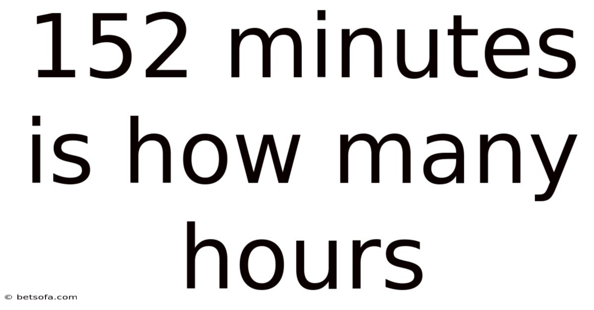 When you glance at a digital timer, a kitchen clock, or a workout log and see 152 minutes, the number can feel abstract. In this article we will walk through the conversion process step‑by‑step, explore why understanding this relationship matters, and address common pitfalls that can lead to miscalculations. Converting “152 minutes” into a more familiar unit—hours—helps us grasp the length of time in a way that fits naturally into our routines. Which means most of us intuitively think in hours rather than minutes, especially when planning daily schedules, travel itineraries, or study sessions. By the end, you’ll not only know that 152 minutes equals 2 hours 32 minutes, but you’ll also have a solid framework for converting any minute count into hours and minutes with confidence.