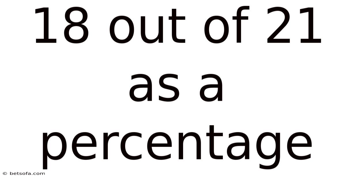 At its core, "18 out of 21 as a percentage" is a straightforward calculation that involves dividing the part (18) by the whole (21) and then multiplying the result by 100. This method transforms the fraction into a percentage, which is a more universally understandable format. The formula for this conversion is:
