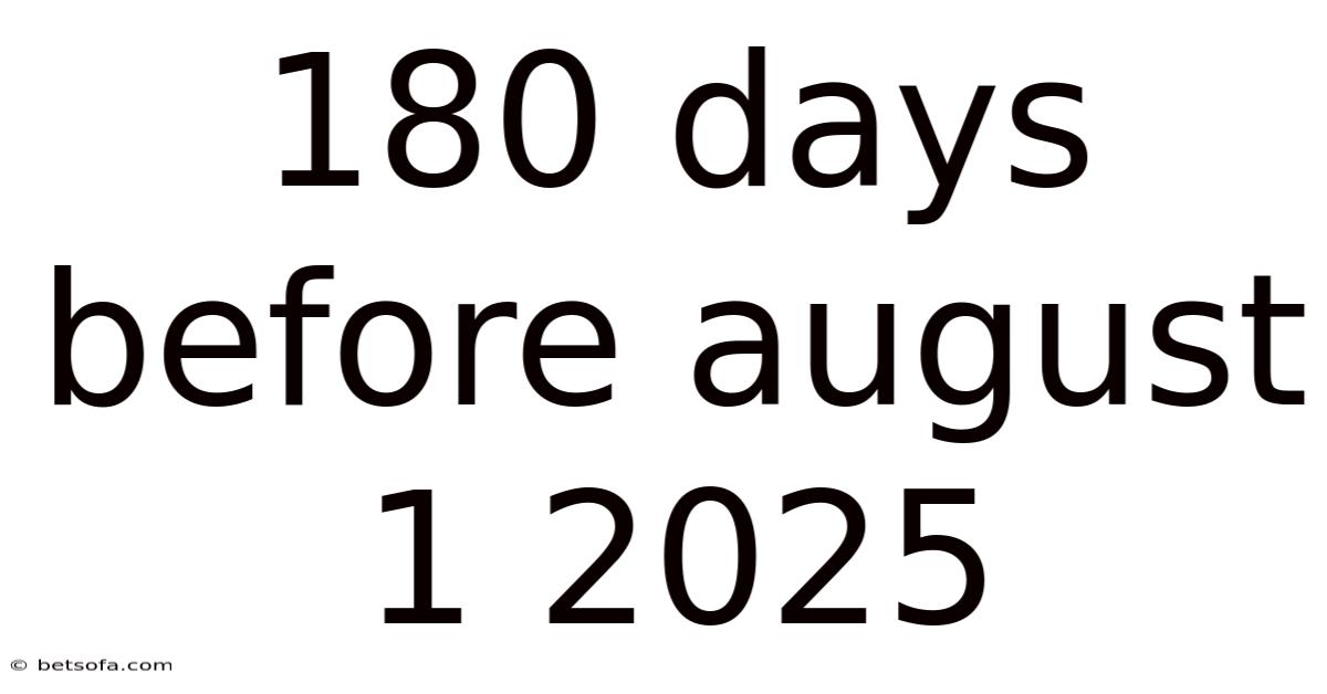 When planning for significant events, deadlines, or milestones, understanding timeframes and calculating dates accurately becomes essential. Here's the thing — the question "180 days before August 1, 2025" represents a specific point in time that might be relevant for various planning purposes, from academic schedules to business quarters or personal milestones. This date calculation helps us establish important reference points in our calendars, enabling better organization and preparation. In this practical guide, we'll explore how to determine this specific date, understand its significance, and learn the methodology behind such calculations to apply them in various real-world scenarios.