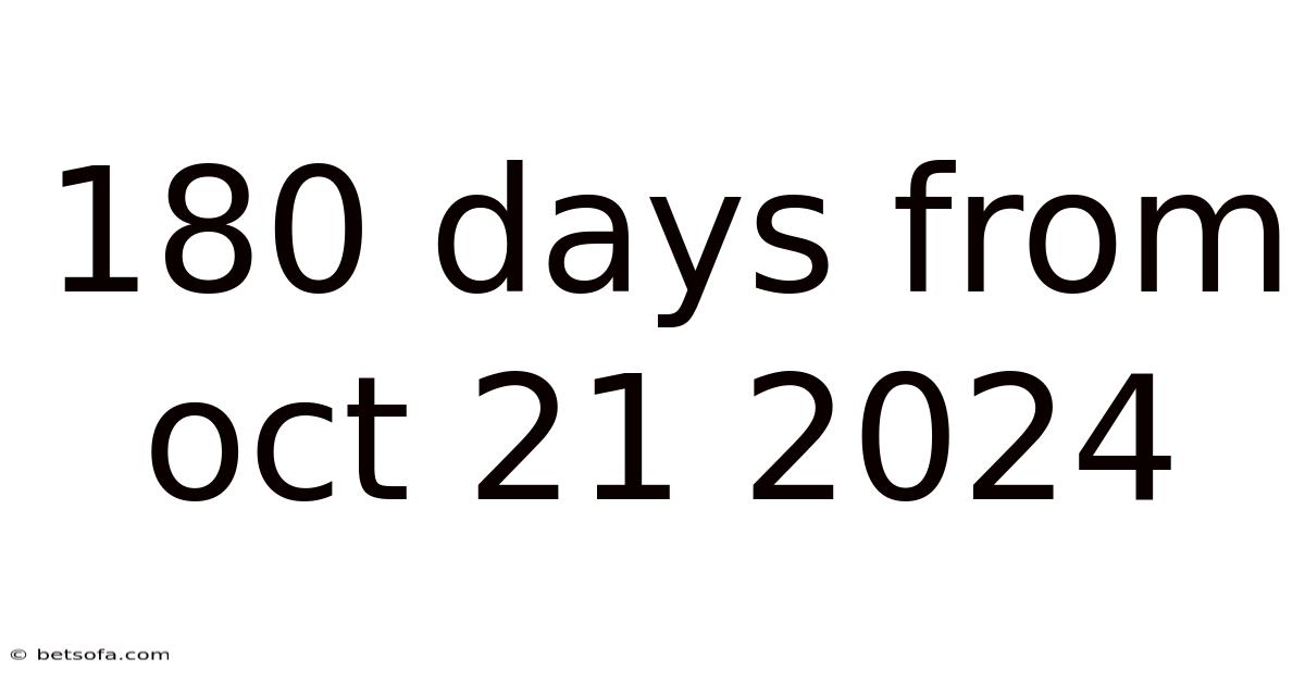 Detailed Explanation The expression “180 days from Oct 21 2024” refers to the calendar date that occurs exactly 180 days after October 21, 2024. This is a straightforward date‑addition problem, but its significance stretches far beyond simple arithmetic.
