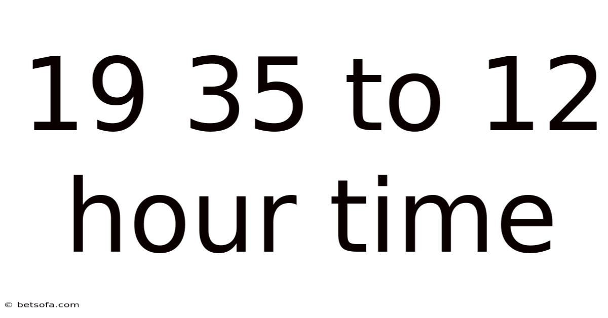 Have you ever found yourself staring at a clock that reads 19 35 and wondering what that means in the more familiar 12‑hour format? Converting a 24‑hour (“military”) time to a 12‑hour clock is a handy skill for travelers, international colleagues, and anyone who deals with schedules across time zones. In this article we’ll break down the concept of converting 19 35 (which is 7:35 p.m.) into a 12‑hour time, explain why it matters, and give you practical steps and tips to avoid common pitfalls. Think of this as your quick‑reference guide to mastering the 24‑hour to 12‑hour conversion Not complicated — just consistent..