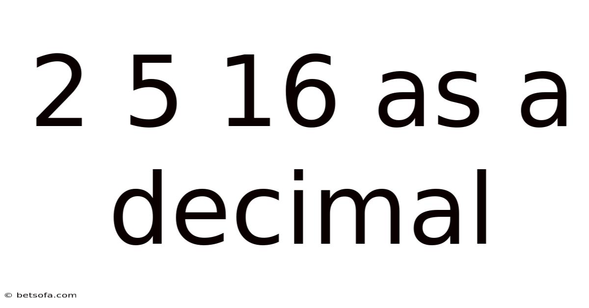 A mixed number combines a whole‑number part and a proper fraction. In 2 5/16, the whole‑number component is 2, and the fractional component is 5/16. To express the entire quantity as a single decimal, we need to: