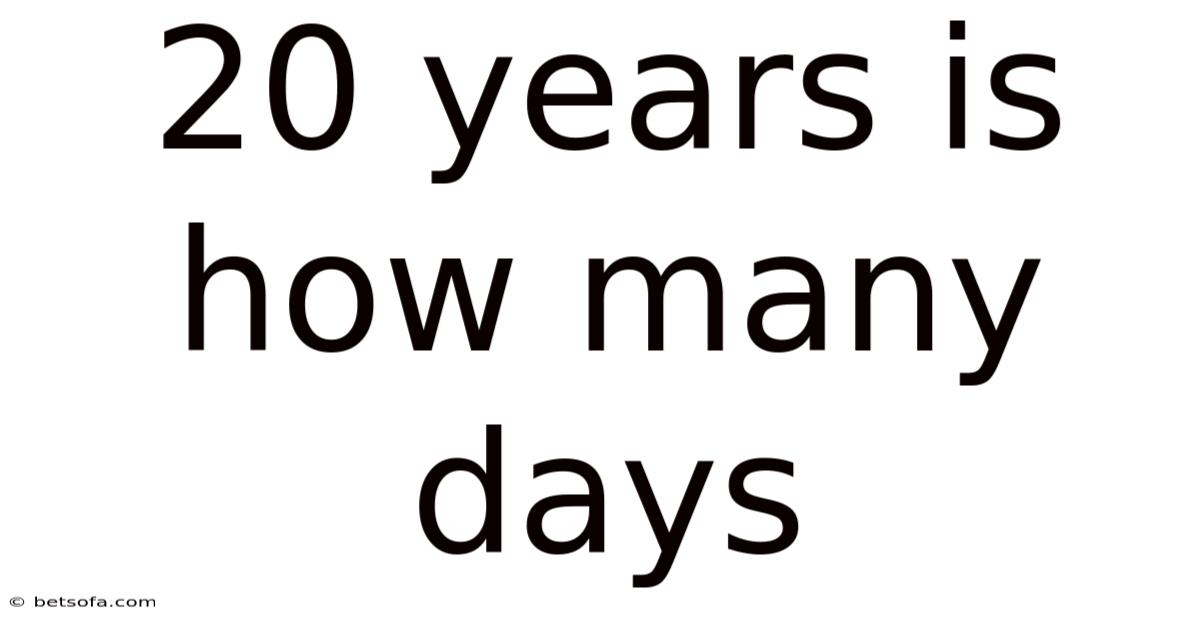 - Calculation: $20 \text{ years} \times 365 \text{ days/year} = 7,300 \text{ days}$. This number, 7,300, serves as our foundation, but it is technically an underestimate because it ignores the leap years.
