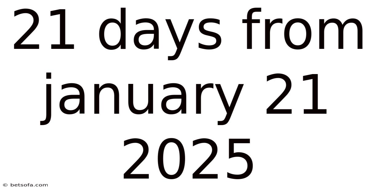 Q: What day of the week is 21 days from January 21, 2025? A: Since 21 days is exactly three weeks, the day of the week remains the same. Which means, 21 days from January 21, 2025 (a Tuesday) is February 11, 2025, which is also a Tuesday Most people skip this — try not to..