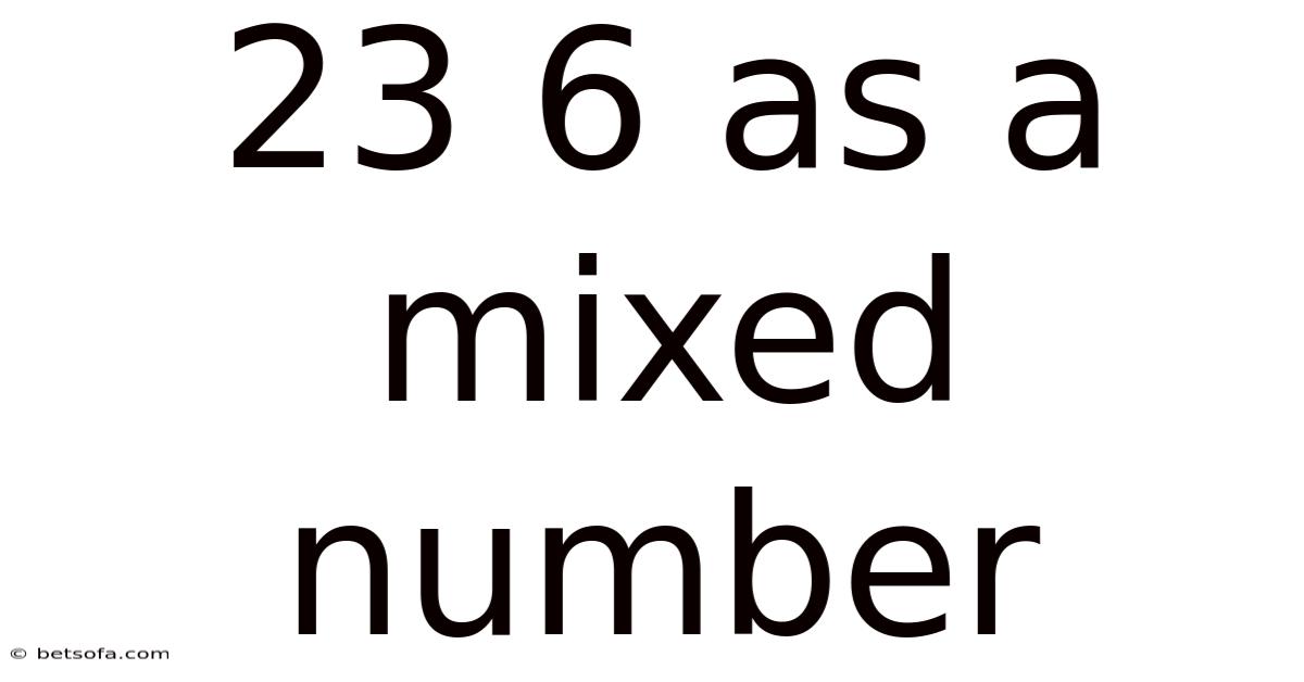 In this article we will focus on a specific case: 23 ⁄ 6. On top of that, we will explore what a mixed number is, why converting 23 ⁄ 6 into a mixed number matters, and how to perform the conversion step by step. By the end, you’ll not only know that 23 ⁄ 6 = 3 ⅔, but you’ll also understand the broader concepts that make mixed numbers a useful tool in everyday math, schoolwork, and real‑world problem solving That's the part that actually makes a difference. Took long enough..