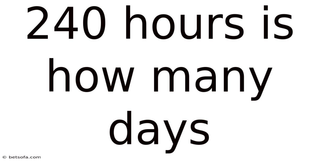 - Standard conversion: 240 hours ÷ 24 hours = 10 calendar days.
