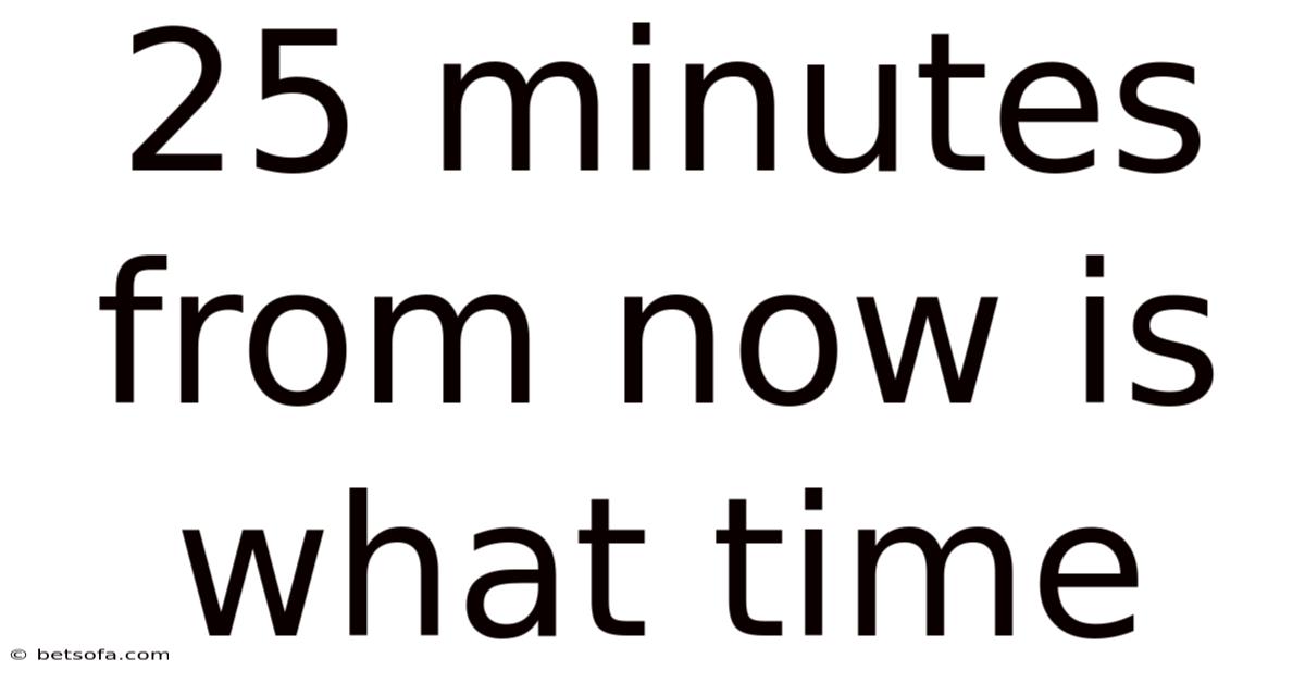 Understanding the significance of 25 minutes from now requires a closer look at its components and how they shape our perception of time. This phrase is not just a simple countdown; it represents a strategic approach to managing time effectively. Here's the thing — at its core, it emphasizes the importance of planning ahead and being proactive about your schedule. When you consider that 25 minutes from now is what time, you are essentially focusing on the immediate future, which is crucial for maintaining a balanced and productive lifestyle.