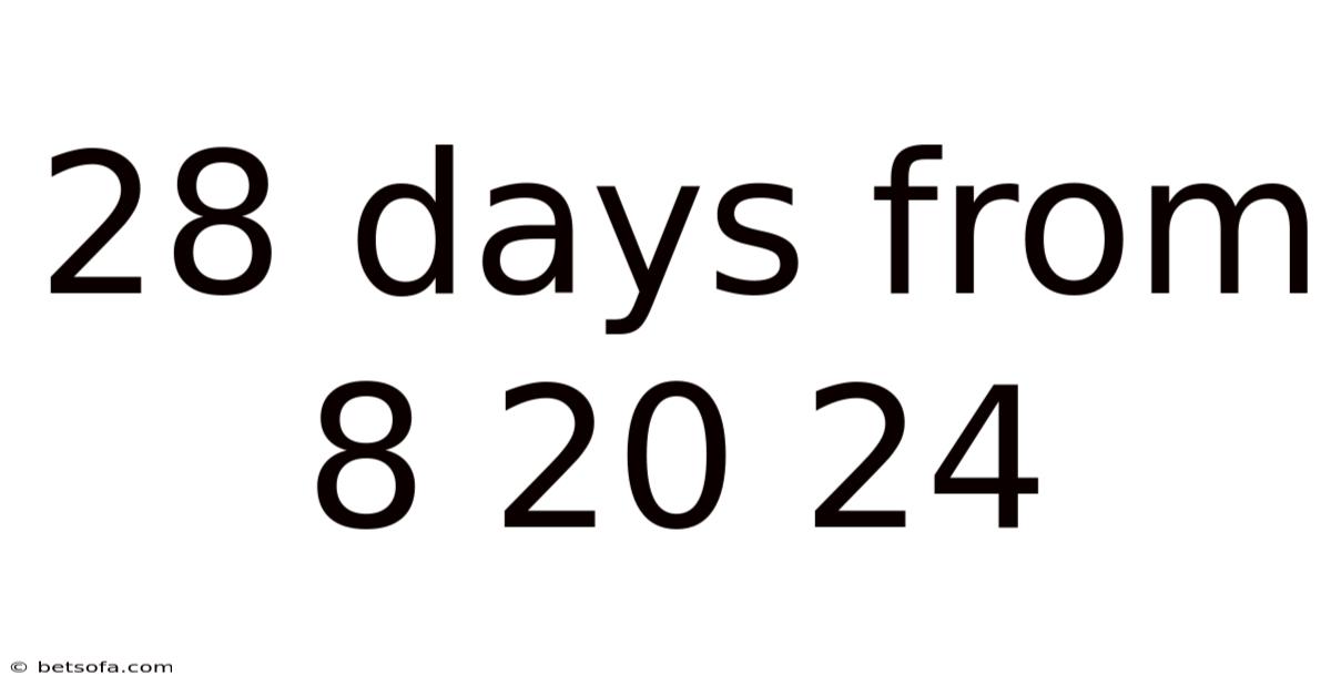 The phrase "28 days from 8/20/24" represents a specific point in time, a future date calculated by adding a fixed duration to a known starting point. While seemingly simple, understanding how to calculate this and why it matters involves navigating date arithmetic, calendar systems, and contextual significance. This article delves into the mechanics of date calculation, explores the potential meanings behind such a countdown, and highlights the importance of precision in this seemingly straightforward task.