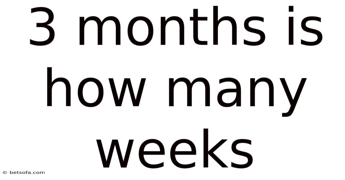 Understanding the relationship between months and weeks is essential in various contexts, from scheduling personal events to managing business operations. Worth adding: in this article, we will explore the concept of converting months to weeks, focusing on the specific question of how many weeks are in 3 months. Practically speaking, a common question that arises is, "3 months is how many weeks? " This query is not just a simple arithmetic problem; it's a fundamental aspect of time management and conversion that affects many aspects of daily life. By the end of this piece, you will have a clear understanding of the calculation, the reasoning behind it, and its practical applications Simple as that..