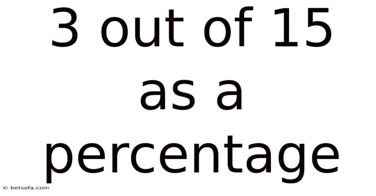 Converting “3 out of 15” into a percentage is more than a trivial arithmetic exercise; it is a gateway to clearer communication and better data interpretation. Here's the thing — whether you’re a teacher, researcher, business analyst, or everyday problem-solver, mastering this conversion unlocks a universal language of proportion that transcends disciplines and simplifies decision-making. By understanding the fraction, following a simple four-step conversion process, and recognizing the broader context in which percentages thrive, you equip yourself with a versatile tool. Remember: 3 out of 15 equals 20%, a fact that holds true across classrooms, budgets, surveys, and beyond.