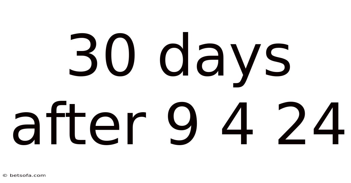 The phrase “30 days after 9 / 4 / 24” points to a specific calendar date: October 4, 2024 (assuming the U.That's why while at first glance it may seem like a simple arithmetic exercise, this date can carry practical, financial, legal, and personal significance depending on the context in which it is used. Plus, s. Even so, month/day/year format). Understanding how to calculate it, what events commonly align with a 30‑day window, and how to prepare for the resulting date helps individuals and organizations stay on top of deadlines, contractual obligations, and planning cycles Simple as that..