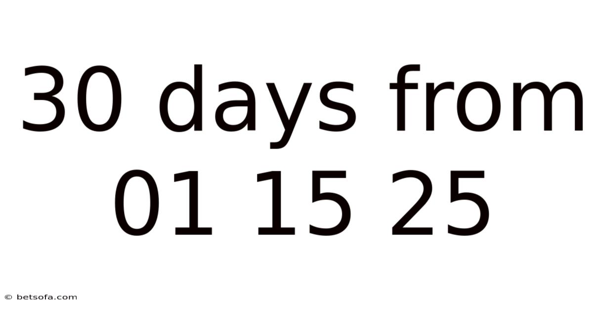 When we refer to "30 days from 01 15 25," we're discussing a specific timeframe that begins on January 15, 2025, and extends through February 14, 2025. On top of that, this seemingly simple date calculation actually represents a valuable window for planning, goal-setting, and project management across various aspects of life and business. Understanding how to calculate and work with 30-day periods effectively can significantly enhance productivity and help individuals achieve their objectives with greater precision. In our fast-paced world, the ability to accurately map out timeframes and understand their implications has become an essential skill for professionals, students, and anyone looking to make the most of their days And that's really what it comes down to..