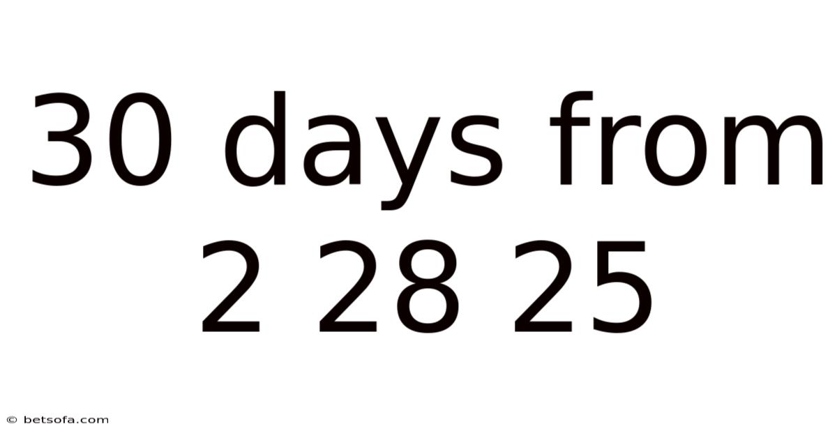 - Mar 30 (Day 30). Which means, 30 days after February 28, 2025, is March 30, 2025.