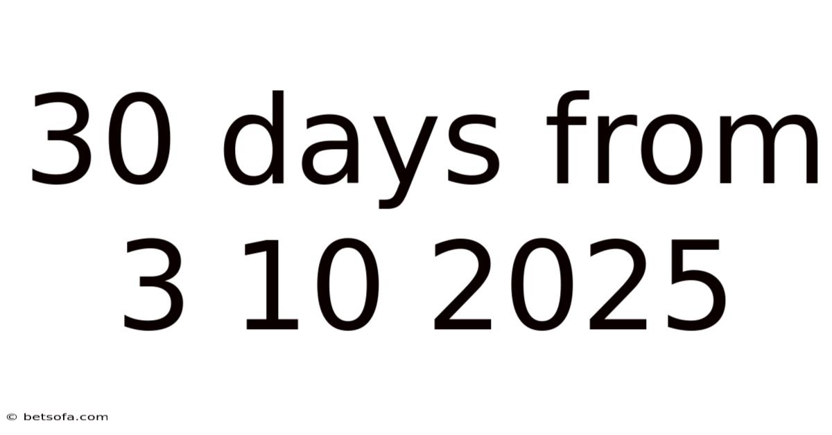 The phrase “30 days from 3 10 2025” is essentially a date‑addition problem. It asks: If I start on 3 October 2025 and count forward exactly thirty calendar days, which date will I land on?