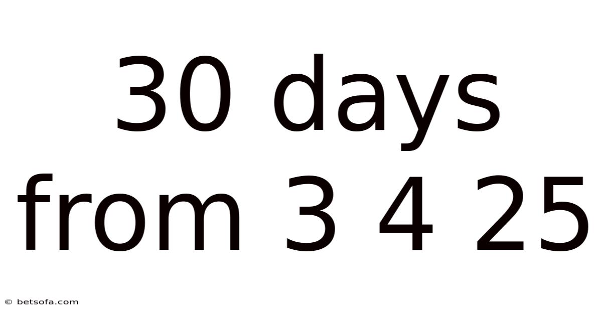 Below is a clear, logical sequence for determining 30 days from 3 4 25: