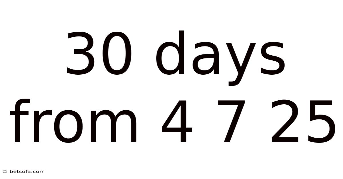 In our fast-paced world, precise time management is not a luxury but a necessity. In practice, whether you are scheduling a project milestone, calculating a subscription renewal, or determining a legal notice period, the simple act of adding days to a specific date is a fundamental skill with significant real-world consequences. Even so, the phrase "30 days from 4/7/25" is more than a casual notation; it is a precise arithmetic problem wrapped in the complexities of the Gregorian calendar. This article will deconstruct this seemingly straightforward calculation, exploring not only the how but the critical why and what if. That said, we will handle the inherent ambiguities in date notation, master the manual step-by-step process, examine its application in professional contexts, and uncover the scientific principles and common pitfalls that can turn a simple task into a costly error. By the end, you will possess a strong, error-resistant framework for tackling any date arithmetic challenge.