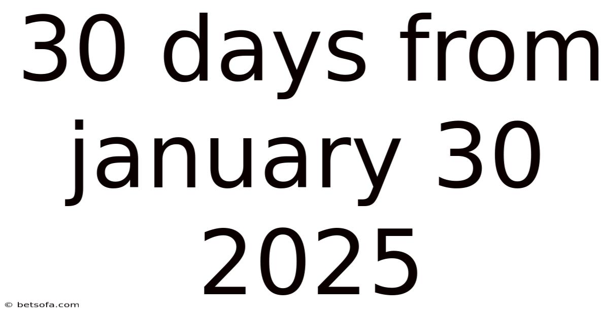 Q: What is the date 30 days from January 30, 2025? A: The date 30 days from January 30, 2025, is February 28, 2025.