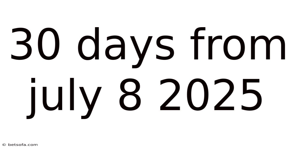 This article serves as a complete walkthrough to understanding and applying the concept of "30 days from July 8, 2025." It will break down the calculation step-by-step, provide practical examples, and address common misunderstandings. By the time you finish reading, you’ll have a clear grasp of how to perform similar calculations and why they are indispensable in both personal and professional spheres Small thing, real impact..
