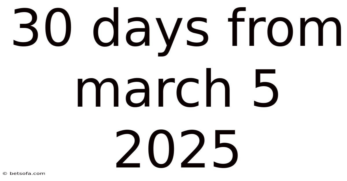 The concept of "30 days from March 5, 2025" is rooted in the Gregorian calendar system, which is the most widely used calendar globally. March 5, 2025, is a specific date that marks a starting point for various time-bound activities. Adding 30 days to this date results in April 4, 2025, which is a Friday. This calculation is straightforward, but its implications are far-reaching. Take this case: in business, a 30-day period is often used to set deadlines for tasks, campaigns, or product launches. In personal development, it might represent a timeframe for achieving a fitness goal, learning a new skill, or improving a habit.