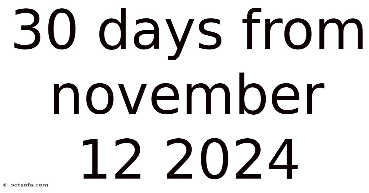 - Project Management: If a project deadline is set for 30 days from November 12, 2024, the team would need to complete their tasks by December 12, 2024.