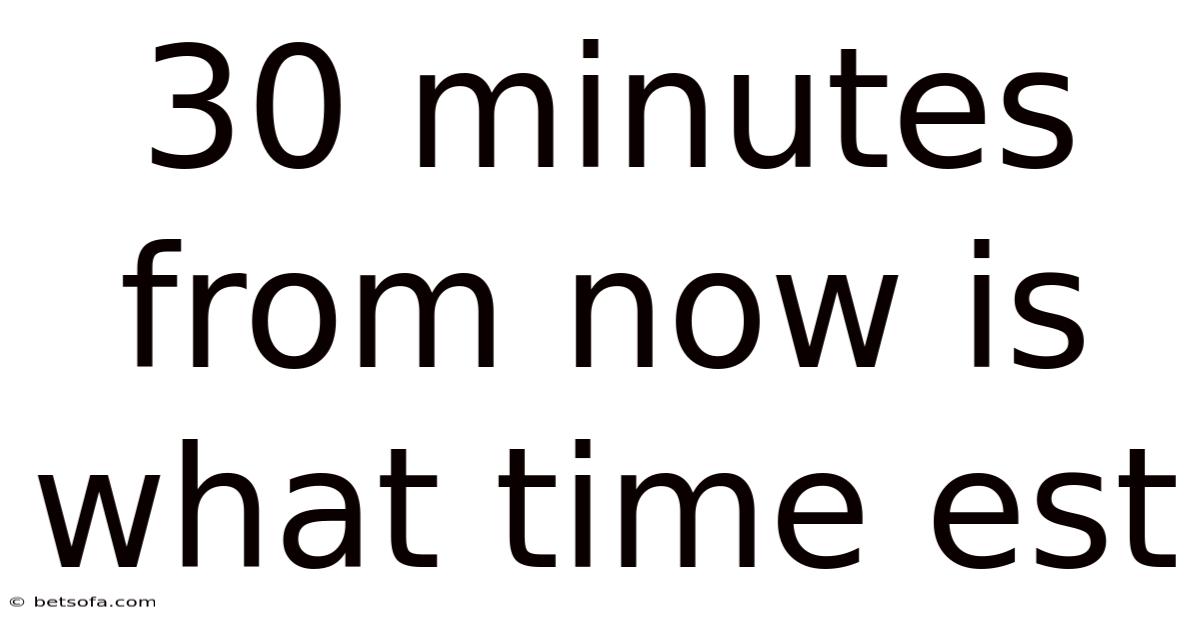 The phrase "30 minutes from now is what time est" might seem like a simple reminder, but it carries a profound message. Worth adding: this phrase emphasizes the importance of time management in our fast-paced world. In a time when distractions are constant and attention spans are shrinking, understanding how to put to use even short bursts of time effectively is essential. This article will explore what this concept means, why it matters, and how you can apply it to your daily routine And that's really what it comes down to..