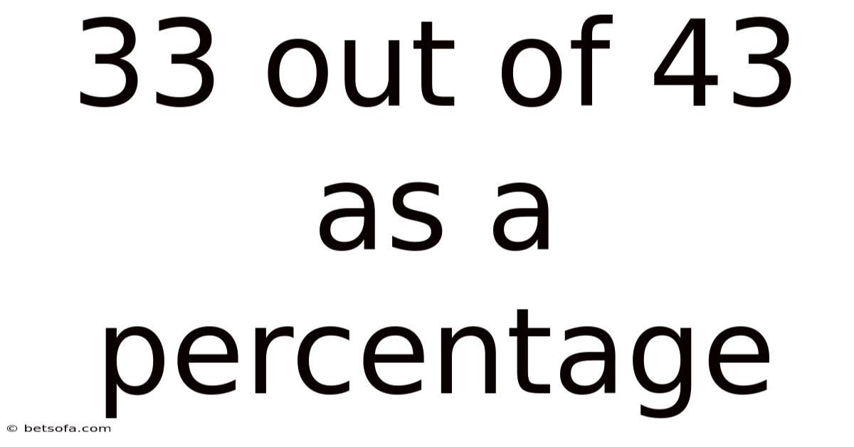 To grasp why this calculation matters, we must first understand the anatomy of a percentage. That's why a percentage is a dimensionless number (pure number) used to express a fraction of 100. It is denoted using the percent sign, "%". The mathematical foundation of our specific problem lies in the fraction 33/43. This fraction is improper in the sense that the numerator (33) is less than the denominator (43), but it is not a "proper" fraction in the traditional sense of being less than one; it simply represents a portion of a larger group.