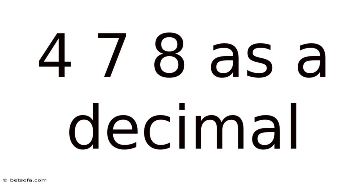 The phrase "4 7 8 as a decimal" might initially seem ambiguous, but it opens the door to exploring fundamental concepts in mathematics, particularly the representation of numbers in the decimal system. Whether you’re a student, educator, or someone curious about numerical systems, this article will break down the meaning of "4 7 8 as a decimal," clarify common misconceptions, and provide practical examples to deepen your understanding Small thing, real impact..