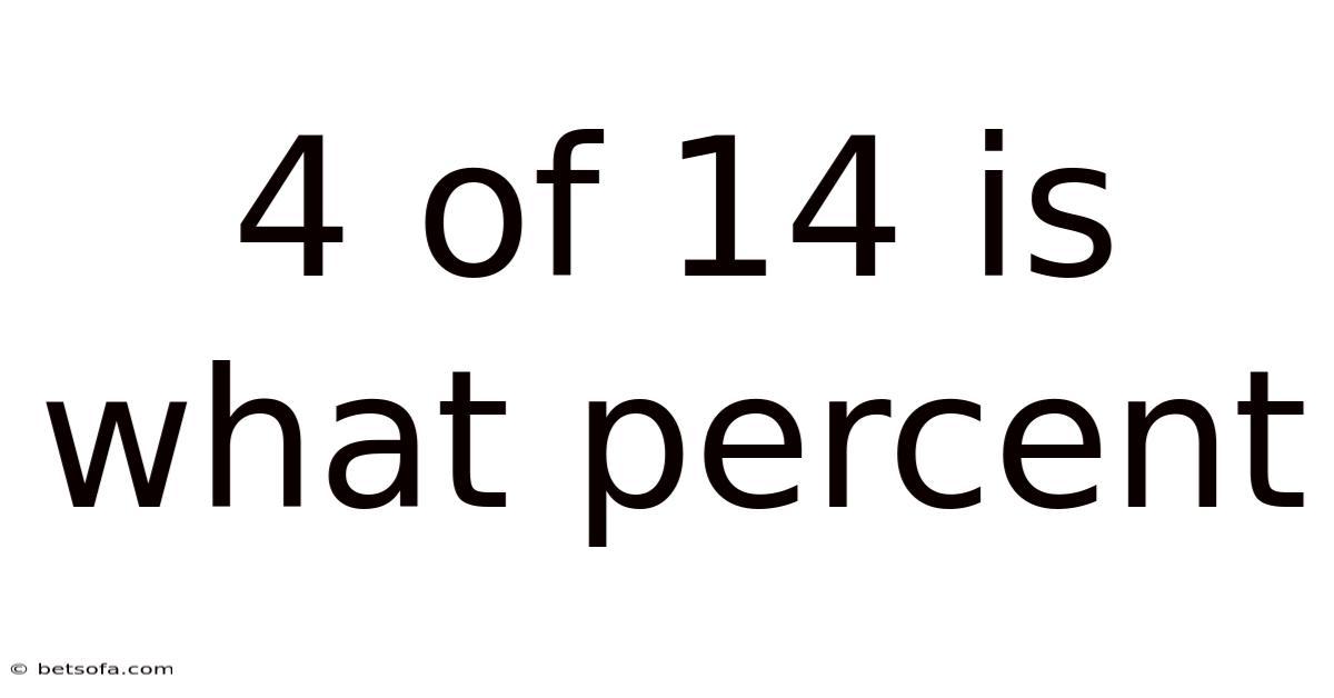 Understanding percentages is a fundamental mathematical skill essential for everyday life, from calculating discounts and interpreting statistics to analyzing financial data and understanding test results. The question "4 of 14 is what percent?That's why " is a common query that highlights the core principle of expressing a part of a whole as a fraction of 100. This article will provide a thorough exploration of this specific calculation, delving into the underlying concepts, the step-by-step process, real-world applications, and common pitfalls, ensuring you grasp not just the answer but the why and how behind it.