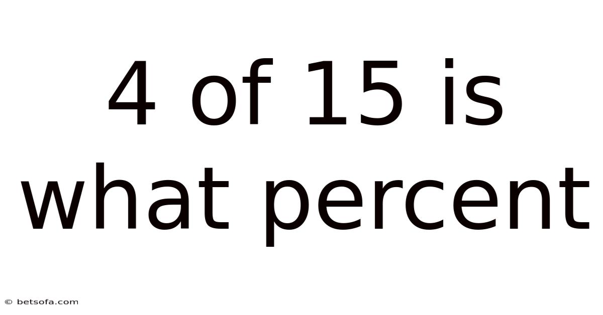Understanding percentages is a fundamental mathematical skill used daily, from calculating discounts and tips to interpreting data and solving complex problems. The question "4 of 15 is what percent?" is a common query that highlights the core concept of expressing a part of a whole as a fraction of 100. This article will provide a thorough exploration of this calculation, breaking down the process, explaining the underlying principles, and offering practical insights to ensure you grasp not just the answer, but the why behind it.