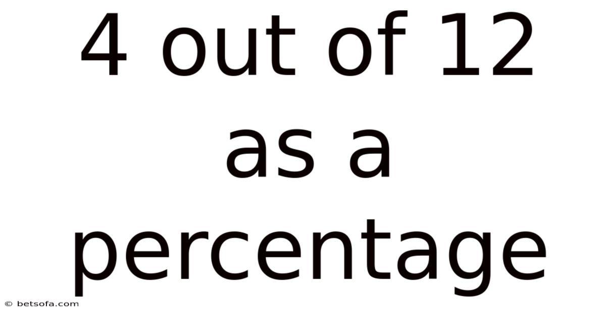 Converting 4 out of 12 into a percentage is a straightforward yet essential mathematical skill. That's why by understanding the process—dividing the numerator by the denominator and multiplying by 100—you can easily express any fraction as a percentage. In practice, this skill is not only useful in academic settings but also in real-world applications such as grading, business analysis, and sports statistics. Remember to avoid common mistakes like forgetting to multiply by 100 or rounding too early, and you'll be able to confidently convert fractions to percentages in any context. Mastering this concept will enhance your numerical literacy and help you make more informed decisions in various aspects of life Not complicated — just consistent. Nothing fancy..