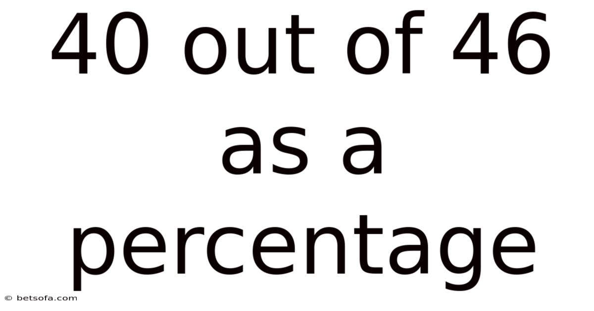 When you see a fraction like 40 out of 46, you’re often asked to translate it into a percentage. Worth adding: whether you’re a student tackling a math worksheet, a teacher preparing a lesson, or a data analyst interpreting survey results, converting a simple ratio into a percentage is a foundational skill that unlocks clearer communication and deeper insight. Because of that, in this article we’ll explore the meaning of “40 out of 46 as a percentage,” walk through the calculation step by step, and examine why percentages matter in everyday life. By the end, you’ll be able to confidently transform any fraction into a percent and understand its practical significance The details matter here. Simple as that..
