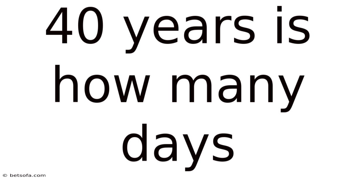 When we think about the passage of time, large units like years can feel abstract until we break them down into smaller, more tangible units. Day to day, one common question that arises is: **40 years is how many days? In practice, it requires us to consider leap years, calendar systems, and the way we measure time. In practice, ** This seemingly simple question involves more than just multiplying 40 by 365. In this article, we will explore the exact number of days in 40 years, explain the reasoning behind the calculation, and provide practical examples to help you understand the significance of this time span Practical, not theoretical..