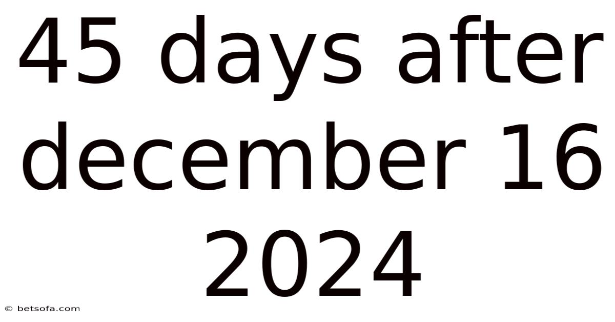 The phrase 45 days after december 16 2024 describes a future calendar date that results from adding forty‑five consecutive days to December 16, 2024. To grasp why this matters, consider how dates are structured: each month contributes a fixed number of days, leap years introduce an extra day in February, and the week cycles every seven days. When you add a specific number of days, you are essentially moving forward through this structured grid, crossing month boundaries and possibly years Simple, but easy to overlook. Practical, not theoretical..