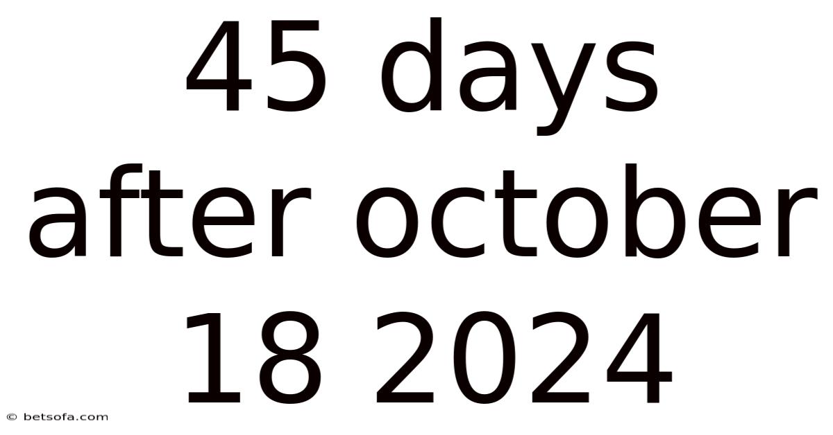 When youhear the phrase 45 days after october 18 2024, the first thing most people wonder is: what exact date does that land on, and why does it matter? This question isn’t just about a calendar calculation; it’s a gateway to planning projects, setting deadlines, and understanding how time intervals shape our schedules. In this article we’ll unpack the meaning behind those 45 days, walk through the math step‑by‑step, explore real‑world uses, and answer the most common queries that arise when dealing with date arithmetic. By the end, you’ll have a crystal‑clear picture of how 45 days after october 18 2024 fits into any timeline you’re building That's the part that actually makes a difference..