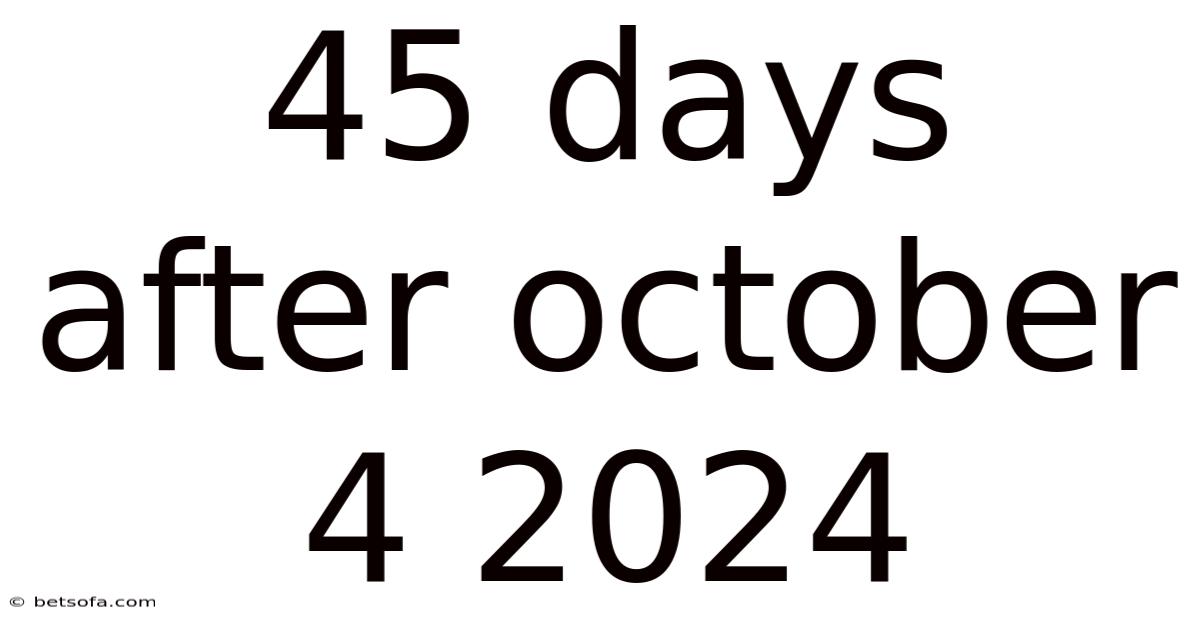 The phrase “45 days after October 4 2024” refers to a specific calendar calculation: adding 45 days to the starting date of October 4, 2024. To grasp its significance, it helps to understand the Gregorian calendar mechanics that govern month lengths and leap‑year adjustments. October 4 falls in the fourth month of the fiscal quarter for many organizations, making it a natural checkpoint for quarterly reviews, budget cycles, or project deliverables. Adding 45 days pushes us into early December, a period often associated with year‑end preparations, holiday planning, and final examinations in many educational systems.
