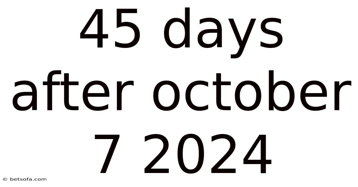 First, identify the starting date: October 7, 2024. Next, determine how many days remain in October after the 7th. Since October has 31 days, subtracting 7 from 31 gives us 24 days remaining in October. This means we've accounted for 24 of the 45 days we need to calculate.