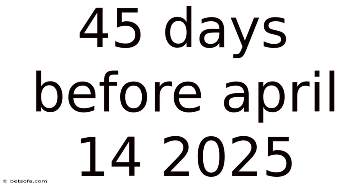 The phrase "45 days before April 14, 2025" might seem like a simple date calculation, but it carries significant weight depending on the context in which it is used. Whether it’s a personal milestone, a professional deadline, or a cultural event, this specific timeframe represents a critical countdown that demands attention and planning. For many, understanding the implications of this date is not just about marking a calendar entry but about preparing for an event or goal that could shape their future. The phrase itself is a precise temporal reference, and its relevance hinges on how individuals or organizations leverage it to achieve their objectives.