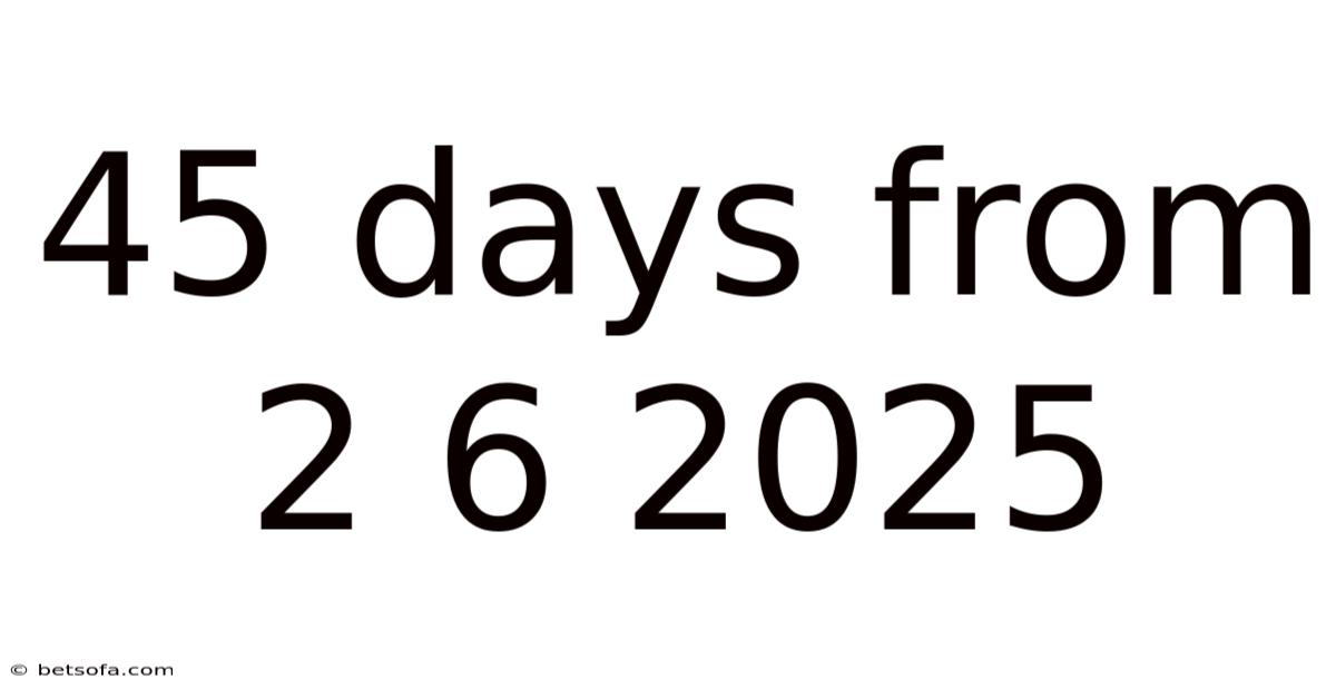 When you see the phrase “45 days from 2 6 2025,” you are being asked to calculate a future calendar date that lands exactly forty‑five days after June 2, 2025. This simple arithmetic can be the backbone of project planning, deadline setting, travel itineraries, and even academic scheduling. In this article we will unpack the meaning behind the expression, walk through the calculation step‑by‑step, illustrate real‑world uses, and address the most common pitfalls that can trip up even seasoned date‑crunchers. By the end, you’ll have a clear, authoritative understanding of how to translate “45 days from 2 6 2025” into a concrete date and why that knowledge matters Small thing, real impact. Still holds up..