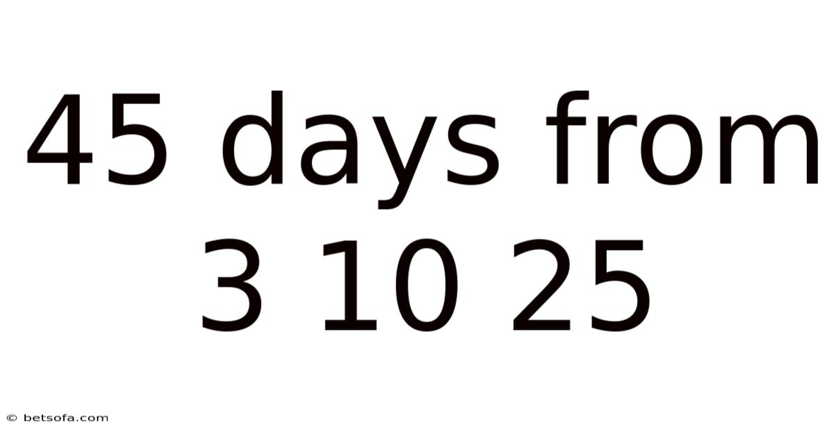 The primary keyword, 45 days from 3 10 25, serves as the anchor for our investigation. Now, the phrase demands a systematic approach: we must first establish a definitive baseline, then apply temporal logic, and finally interpret the numerical clues. It implies a starting date—likely March 10, 2025—and a forward projection in time. This process is not merely mathematical; it involves critical thinking about context, patterns, and real-world applications. On the flip side, the inclusion of "25" introduces ambiguity: is it the year 2025, or perhaps a component of a different code? Whether you're scheduling a project, analyzing historical data, or solving a riddle, mastering the ability to manipulate dates and interpret numerical sequences is a valuable skill.