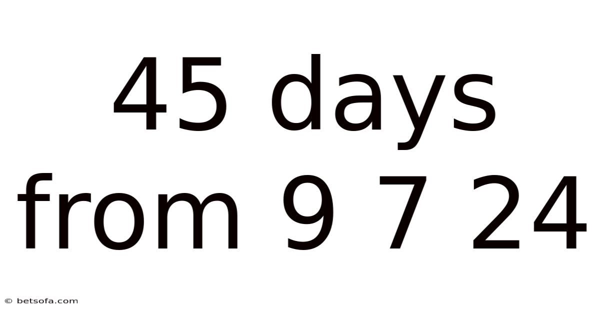 Q: What is 45 days from September 7, 2024? A: 45 days from September 7, 2024, is October 22, 2024.